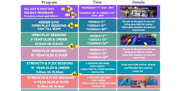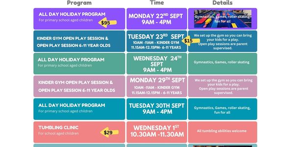 9am till 4pm session for school aged children which includes gymnastics activities, games and roller skating.